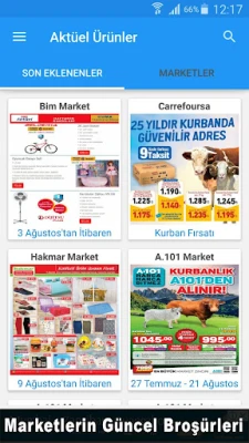 Aktüel Ürünler Kataloğu ile marketlerin güncel indirim kataloglarına kolayca ulaşın. Haftalık kampanya broşürlerini ve özel fırsatları anında öğrenin. Bildirimler, yakınlaştırma ve favori ekleme özellikleri sayesinde hiçbir fırsatı kaçırmayın.