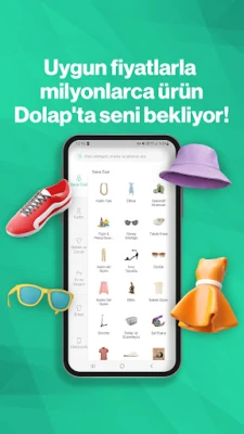 Dolap, gardırobunuzdan evinizin her köşesine kadar uzanan geniş bir yelpazede, moda ve yaşam tarzında yepyeni bir döngüyü başlatıyor. Kadın, Bebek&Çocuk, Ev&Yaşam, Erkek ve Elektronik gibi ana kategorilerde, ister sıfır etiketli ister özenle kullanılmış parçalar olsun, binlerce ürüne Trendyol güvencesiyle kolayca ulaşabilir veya kendi eşyalarınıza yeni bir hayat verebilirsiniz. Artık hem değer katmanın hem de değerli parçalara sahip olmanın en şık ve pratik yolu Dolap'ta.