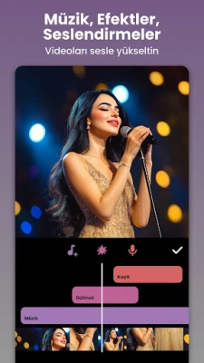 Görsel şöleninize işitsel bir derinlik katmak InShot ile oldukça kolaydır. Kapsamlı müzik kütüphanesinden ücretsiz vlog müzikleri ekleyebilir, kendi MP3 dosyalarınızı veya özel ses efektlerinizi videolarınızla harmanlayabilirsiniz. Hatta video içerisindeki sesi çıkarabilir veya kendi sesinizi bir kaydedici gibi üzerine ekleyerek hikayenizi kişiselleştirebilirsiniz. Videolarınıza can veren geçiş efektleriyle klipler arası akışı pürüzsüzleştirin; InShot'ta 60'tan fazla benzersiz geçiş seçeneği sizi bekliyor. Dinamik animasyonlu çıkartmalar ve çeşitli yazı tipleriyle metinler ekleyerek, zaman çizelgesi üzerinde kolayca senkronize edin ve videolarınıza eğlenceli ya da bilgilendirici dokunuşlar katın.
