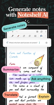 Yazın, çizin, ses kaydedin veya klavyeyi kullanın; Noteshelf 3, notlarınızı istediğiniz şekilde oluşturma özgürlüğü sunar. El yazısı vuruşlarınızı kusursuz geometrik şekillere dönüştürün veya akış şemaları için önceden tanımlanmış formları kullanın. Metin notlarınıza çeşitli stil ve biçimlendirme seçenekleriyle hayat verin. Dersler veya toplantılar sırasında önemli detayları kaçırmamak için ses kaydederken not tutma özelliğinden faydalanın. El yazınızı 65 desteklenen dilde metne dönüştürerek notlarınızda kolayca arama yapın. Unsplash ve Pixabay kütüphanelerinden görseller ekleyerek veya gelişmiş düzenleme araçlarıyla fotoğraflarınızı kişiselleştirerek her sayfayı benzersiz kılın.